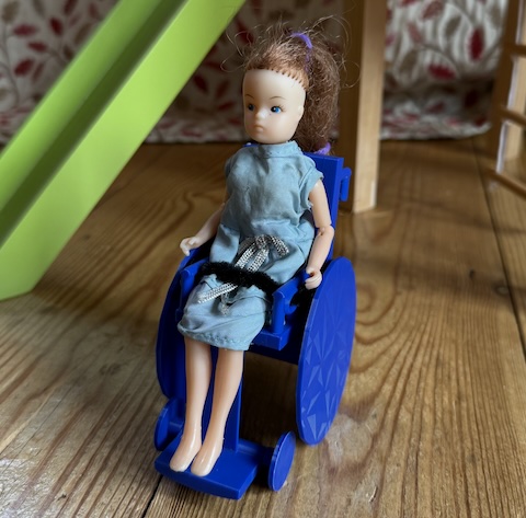 One obvious category (indeed, the thing the printer is doing as I type this) is toys. This was the original impetus for pushing the button on a 3D printer. Specifically, articulated dragons — our youngest in particular loves these. While they’re cool in their way, if this was all the girls were using the printer for I’d be disappointed. However, they’ve been substantially more creative, in particular with doll’s furniture and accessories. The eldest has got very into TinkerCad, and has custom designed numerous pieces, the most ambitious being a working wheelchair for a doll with a broken leg. HeroForge is also proving a hit.